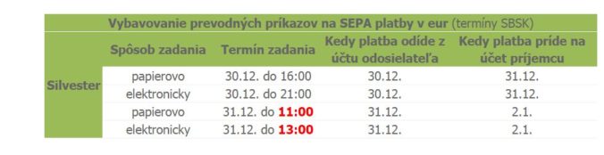 Kedy vykonať platby, aby odišli ešte v tomto roku?